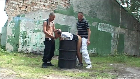 Timo, Ivan and Tony, have nothing to do and chill out. Talking about their cool clothes makes them horny. Soon the cocks a out and swelling and it is clear that Tony is going to be the one to open his holes.