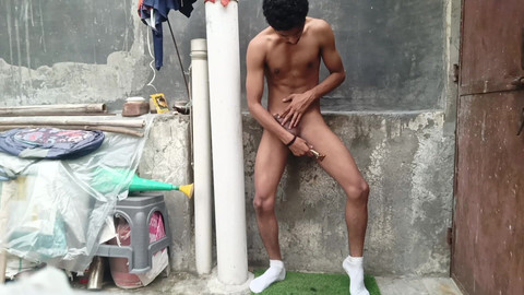 Indian boy shaving his big black dick hairs and balls and then masterbating horny ejaculating his sperms alone on terrace and recording on camera got extreme wild