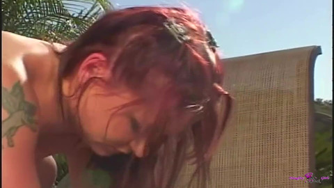 Katja Kassin, a provocative redhead, is prepared to engage with a rigid BBC on the poolside.