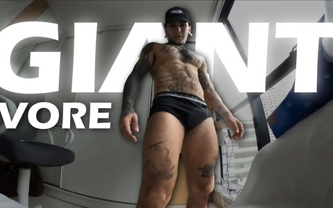 The giant macabreink returns from the gym very sweaty and plays with a small human who always goes to his room in the morning, lets him smell his whole body, feet, butt, cock and tries to eat him but prefers to spill his sperm all over the tiny human's body.