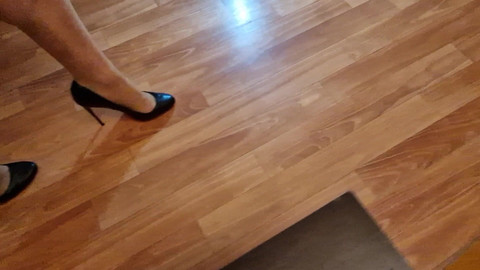 在我新买的黑色高跟鞋里练习走路,然后射精 01:30